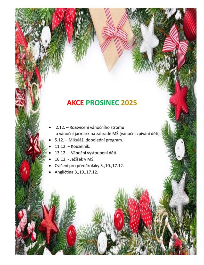 MATEŘSKÁ ŠKOLA BUDE PO DOHODĚ SE ZŘIZOVATELEM UZAVŘENA V OBDOBÍ OD PONDĚLÍ 22.12.2025 DO PÁTKU 2.1.2026 VČETNĚ. webmaster2025-11-09T09:20:19+01:00 Zobrazit příspěvek...